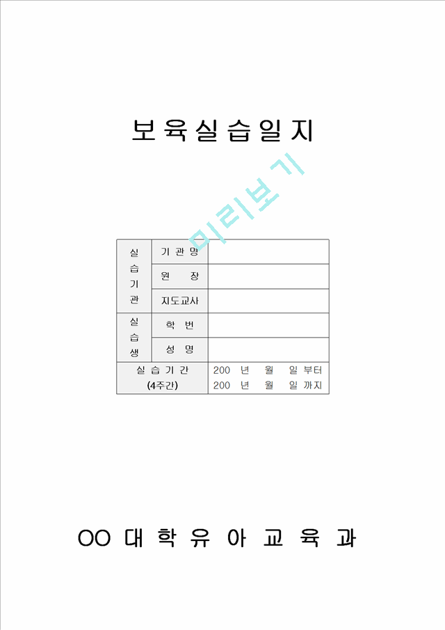 [유아교육] 보육 실습일지 - 양식 - 미리보기를 참고 바랍니다.