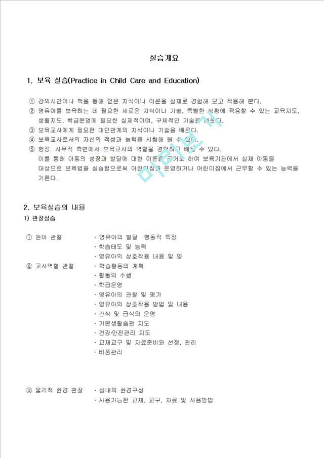 1. 보육 실습(Practice in Child Care and Education)